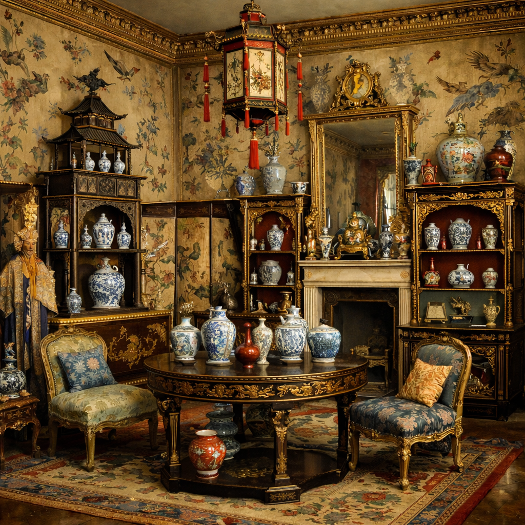 中国や日本から運ばれた磁器や漆器は、当時の英国上流階級にとってまさに宝物でした。